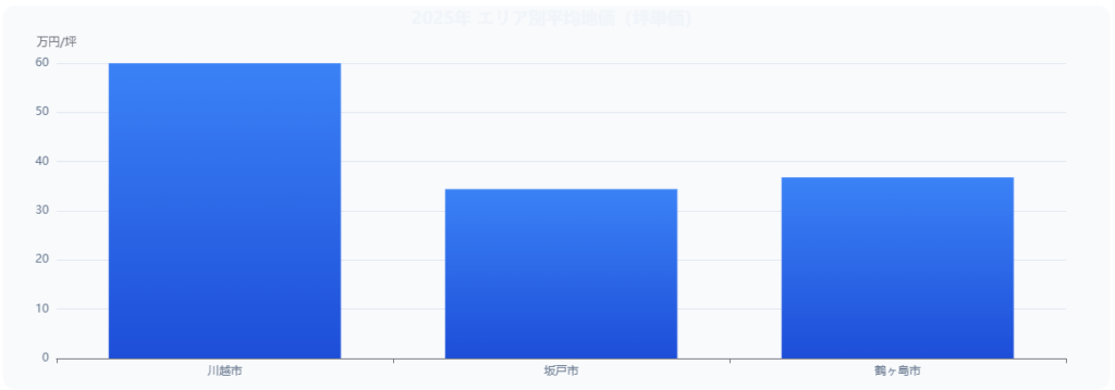 鶴ヶ島市 | 約36.8万円 | 市場が活発、地価上昇期待が高い | 市場の追い風を活かしつつ、物件情報の透明性を高める。 |